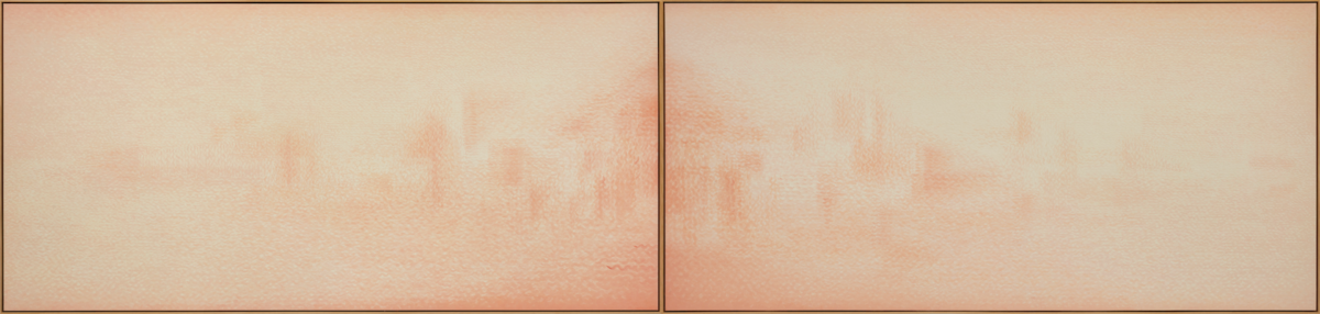 Wang’s paintings, often covered by a mass of countless brushstrokes, use this layered technique to depict profound scenes of tranquil beauty. These visual spaces represent a world that exists prior to becoming a subject of our awareness. Standing in front of these large canvases, the viewer is freed from the constraints of the present moment and discovers the existence of another, more mercurial space and time. Although he used to work mainly with Chinese ink and pencil, Wang began using oil paint in 2007 in order to explore new directions in his artistic practice. By giving up his reliance on outlines and contours, Wang has enabled his vision to draw ever closer to his chosen subjects – so much so that he seems to approach the very essence of their materiality.