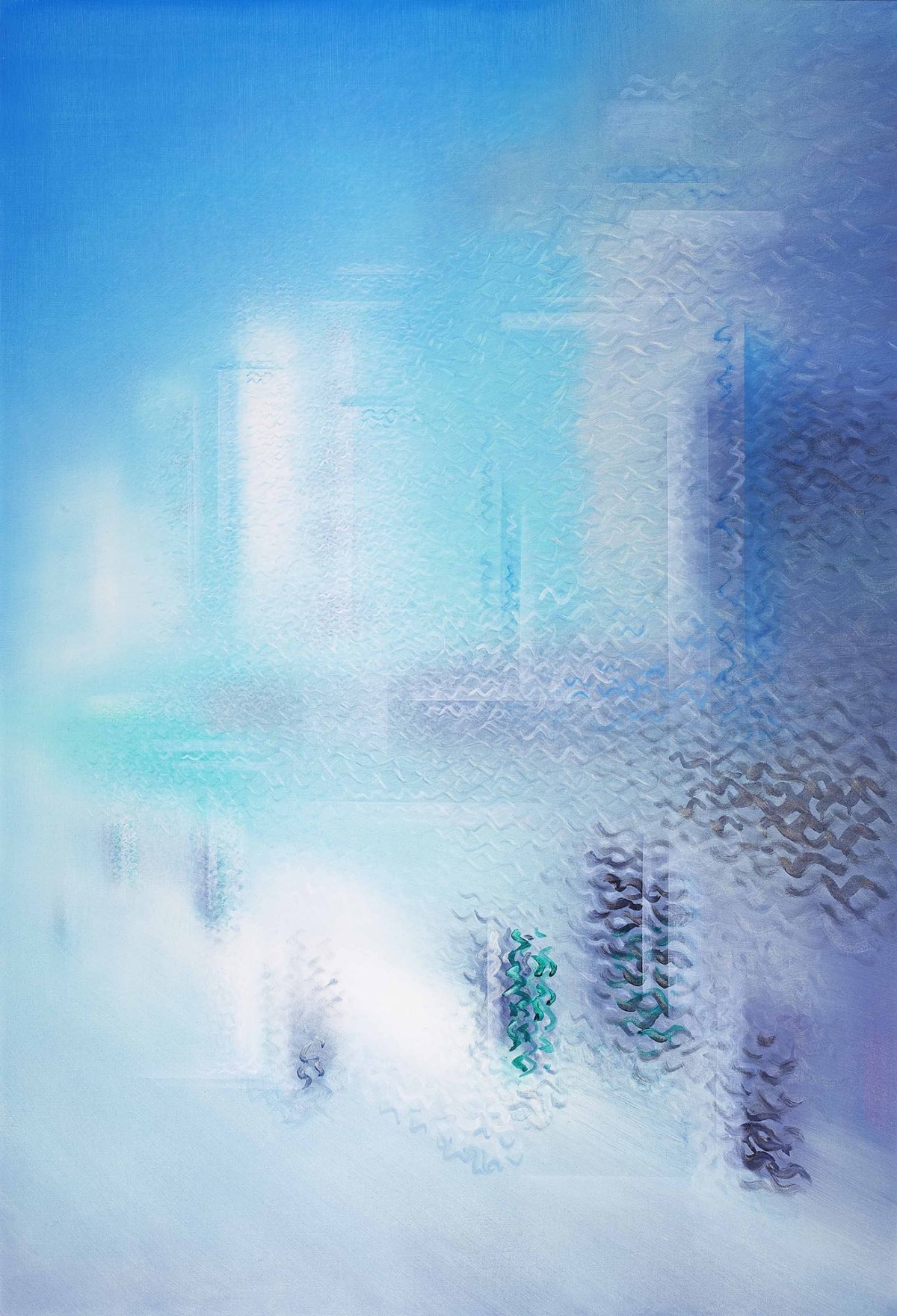 本展で展示する新作は、銀座の街が描かれています。王は私たちがよく知る事物を敢えて題材に取り上げて、認識からの離脱を試みます。鑑賞者はつい先ほど見た街の風景を、日常と異なる知覚次元で体験することになります。本作では、対象としての認識につながりがちな多彩色に挑戦し、都会に特徴的な直線的要素を取り入れるなど、王の新たな試みを見ることできます。