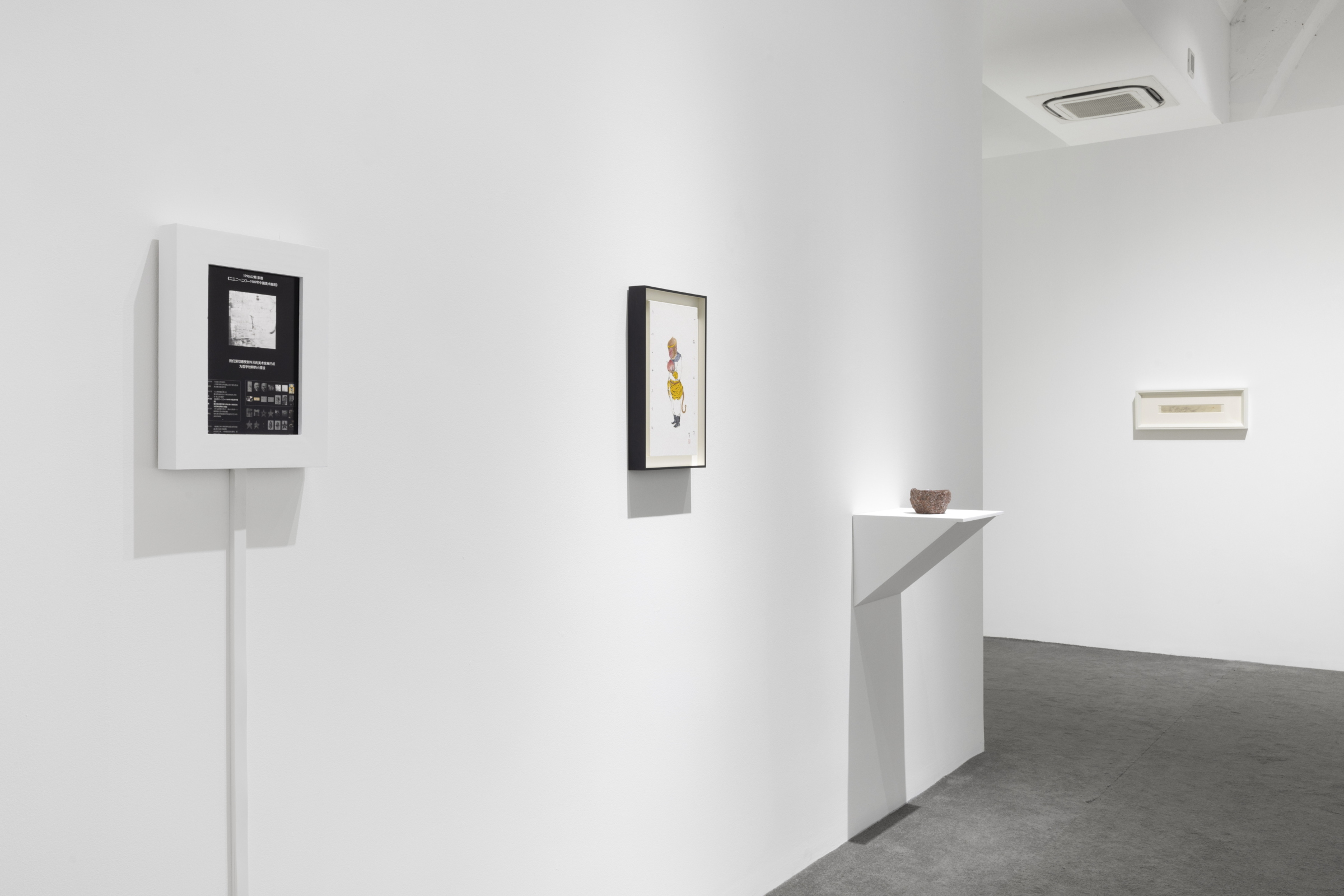杉山の彫刻は大理石と木から成ります。未加工の大理石を自然に見立て、そこに家のフォルムを配置することで、文明の存在をほのめかすのです。ゆっくりと風化していく石と、早々と朽ちて消える木の対比によって、自然の時間と文明の時間の異なるリズムが喚起されます。このような光景を俯瞰する作家あるいは我々の視点は、世界の全体を捉えようとする宗教的なビジョンとも言えるのです。